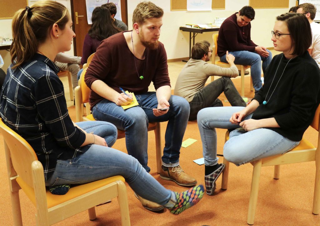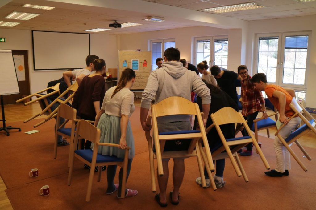 Schülerunionstraining at it’s best! 4 intensive Tage in denen Autos auf Zollstöcken getragen, Dates mit Thomas und David vereinbart, Schokoriegel geschmaust und Stühle auf Fingern balanciert wurden liegen hinter uns. Als Regisseure im Seminarraum sorgten unsere angehenden Trainerinnen und Trainer für Lernerlebnisse mit Herz, Hand und Hirn und einer großen Portion Freude.
